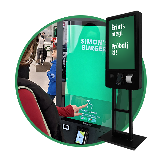 A több nyelven elérhető érintőképernyős KIOSK zökkenőmentes és gyors rendelést, valamint rugalmas fizetést tesz lehetővé vendégei számára.