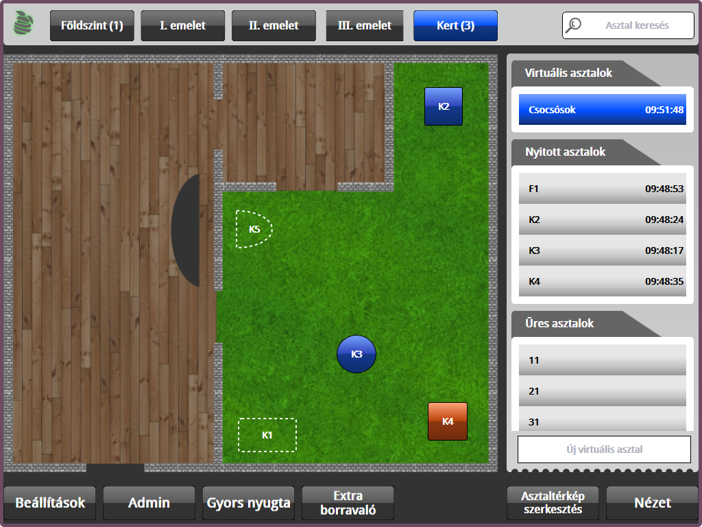 Az asztaltérképen emeletenként eltérő háttérkép állítható be az üzlet kialakítása szerint.